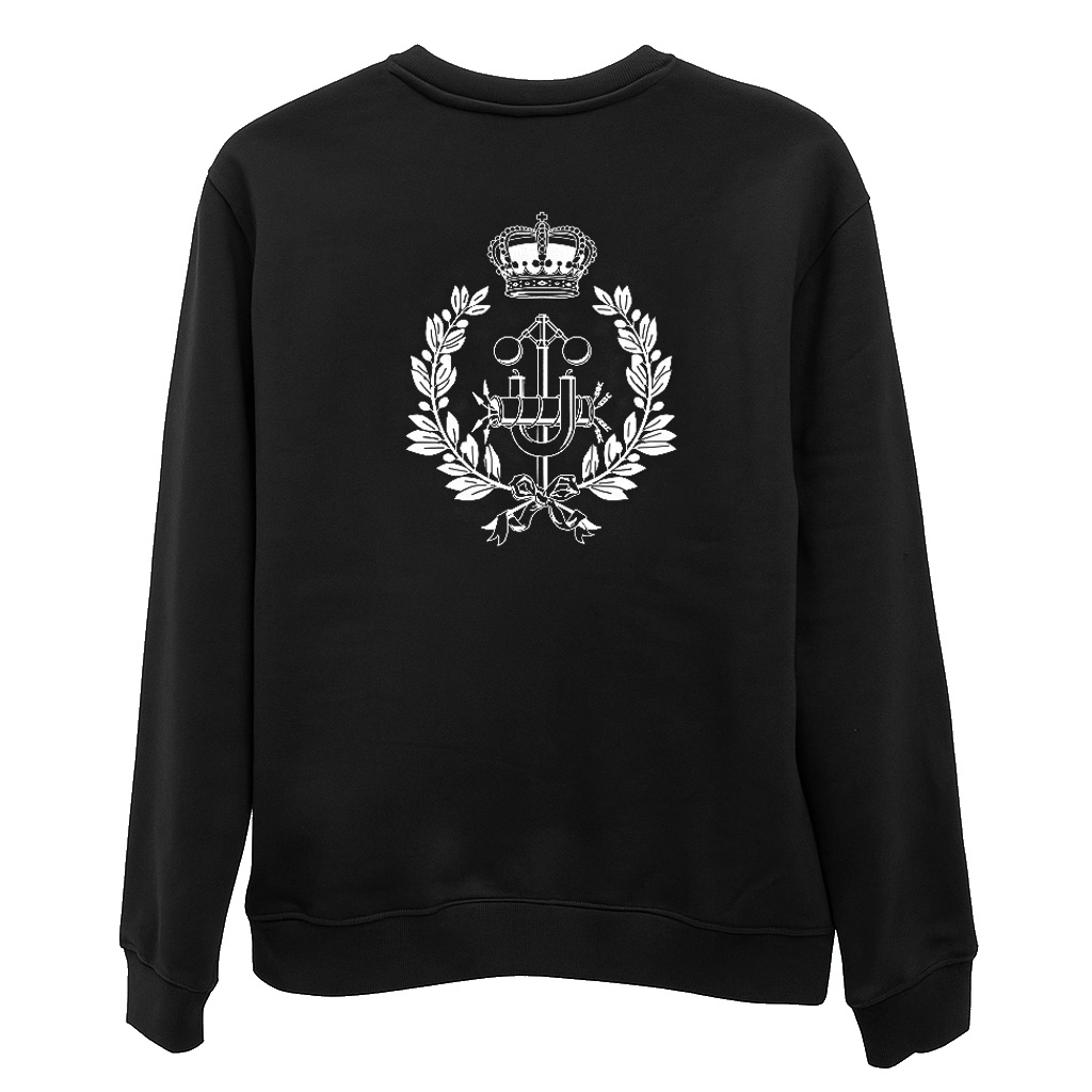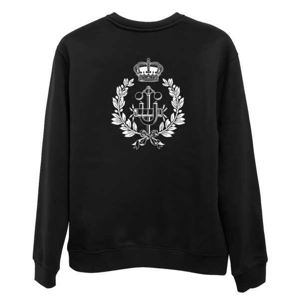 Sudadera sin capucha, de tejido grueso 280 g/m², confeccionada en 60% algodón orgánico y 40% poliéster reciclado. Cuenta con logo de la Cúpula bordado en el pecho y escudo de la ETSII en la espalda en serigrafía. Corte clásico, cómoda y resistente.